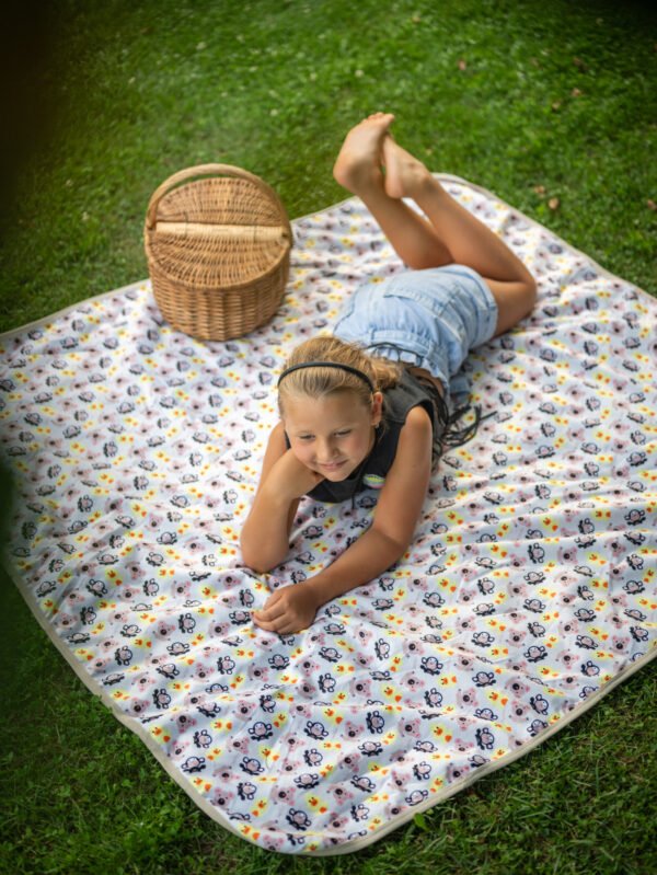 Nepremokavá deka je vyrobená z materiálu PUL, ktorý neprepustí vlhkosť. Ľahko zložiteľná do tašky, vhodná na cesty, ako ochrana matraca a podobne.