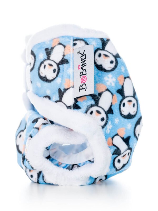 Vrchniačky Bobánek sú vyrobené zo 100% polyesteru s polyuretánovým záterom sú nepriepustné, ale napriek tomu priedušné. Nohavičky sú opatrené patentkami pre ľahkú úpravu veľkosti. Sedia novorodenci od 2 kg. Sú vhodné na novorodenecké vkladacie plienky Bobánek.